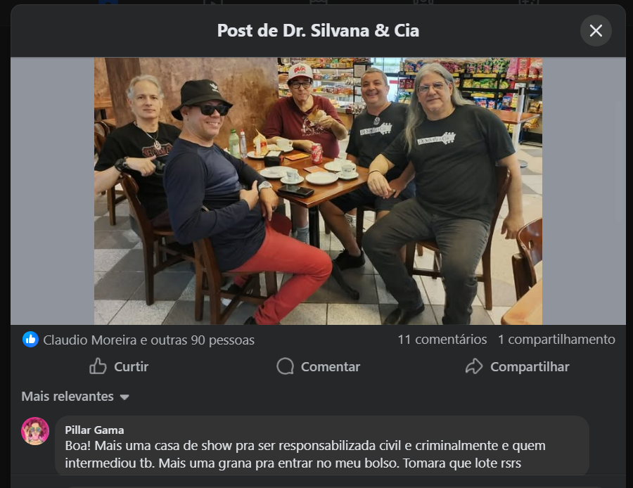 Apoiar um evento em que um dos sócios está investigado criminalmente por uma série de crimes praticados contra a própria sócia é legitimar a continuidade delitiva.